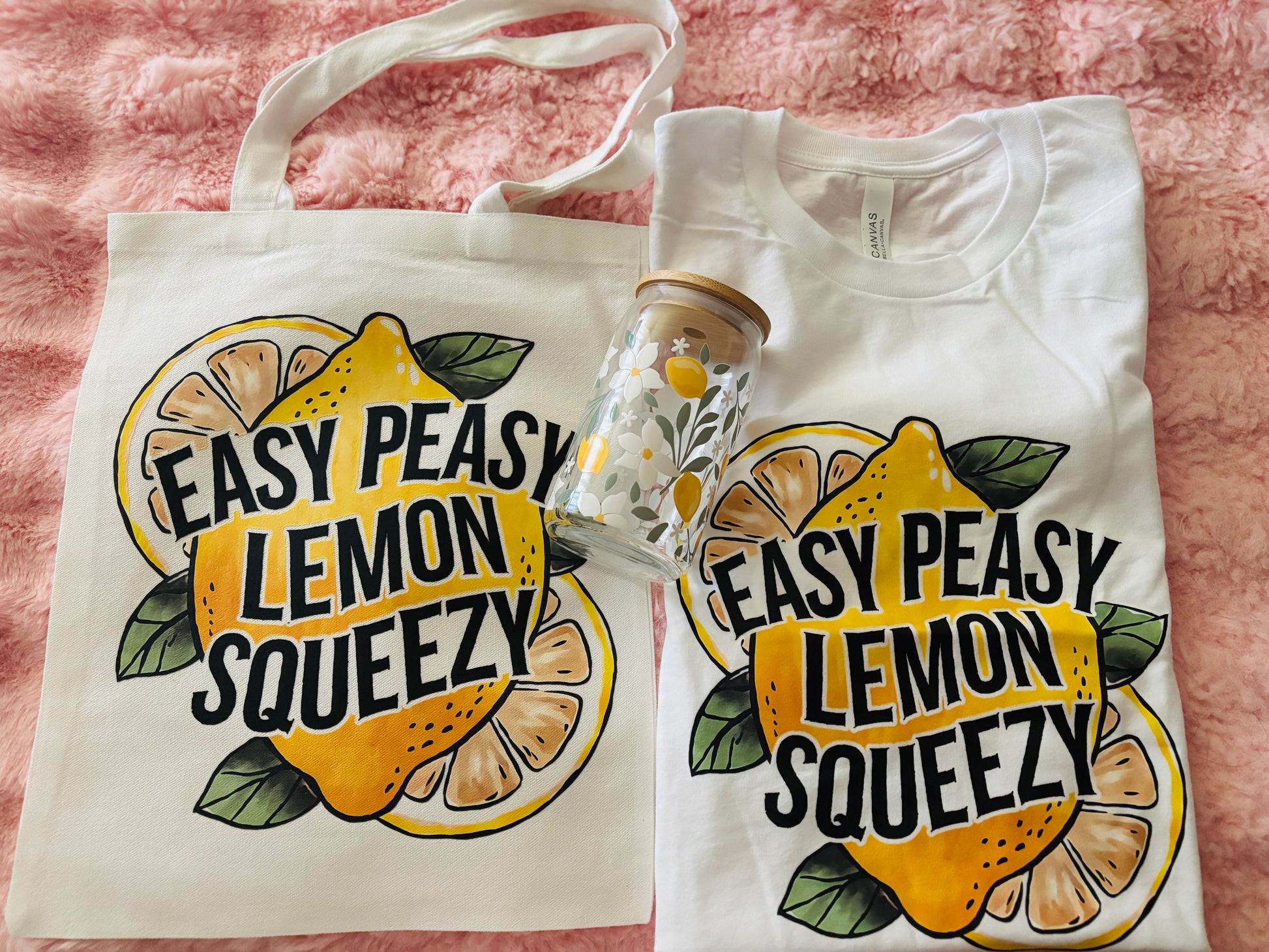 🍋 1 Tote Bag – “Easy Peasy Lemon Squeezy” design