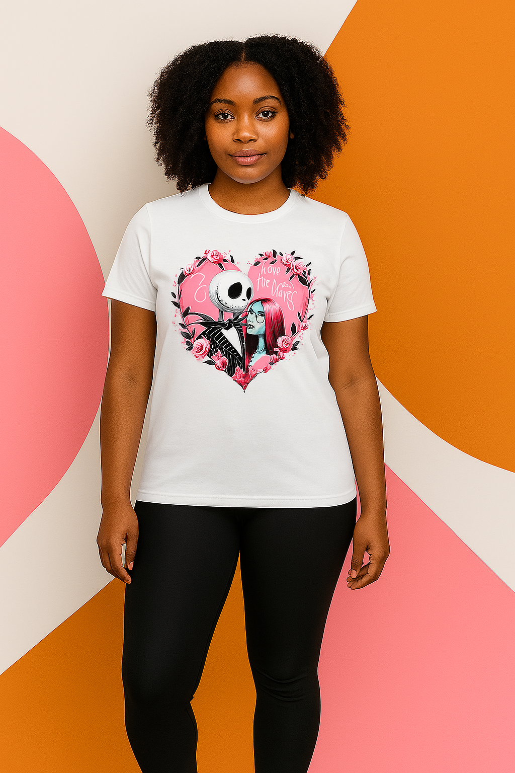 Celebrate Valentine’s Day with a hauntingly romantic vibe in our Nightmare Before Christmas Valentine’s Day T-Shirt! Perfect for fans of the spooky classic, this tee captures the magic of love with a darkly whimsical twist. Whether you’re a Jack and Sally fan or just adore mixing a little fright with your festive flair, this shirt is sure to steal hearts.